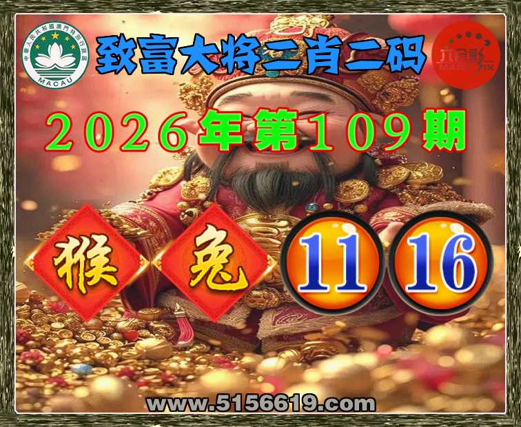 109期: 致富大将 🧶二肖二码🧶【猴兔】【11.16】开:00准