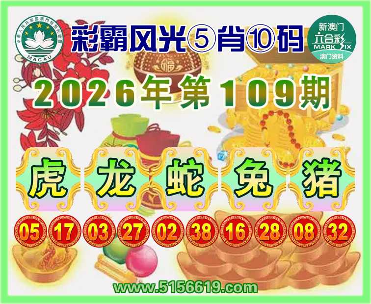 109期:『彩霸风光』 ☝️⑤肖⑩码☝️【虎龙蛇兔猪】开:00准
